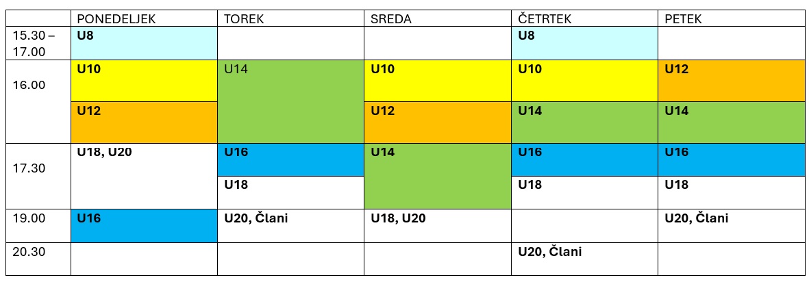 Urnik treningov 2024/25