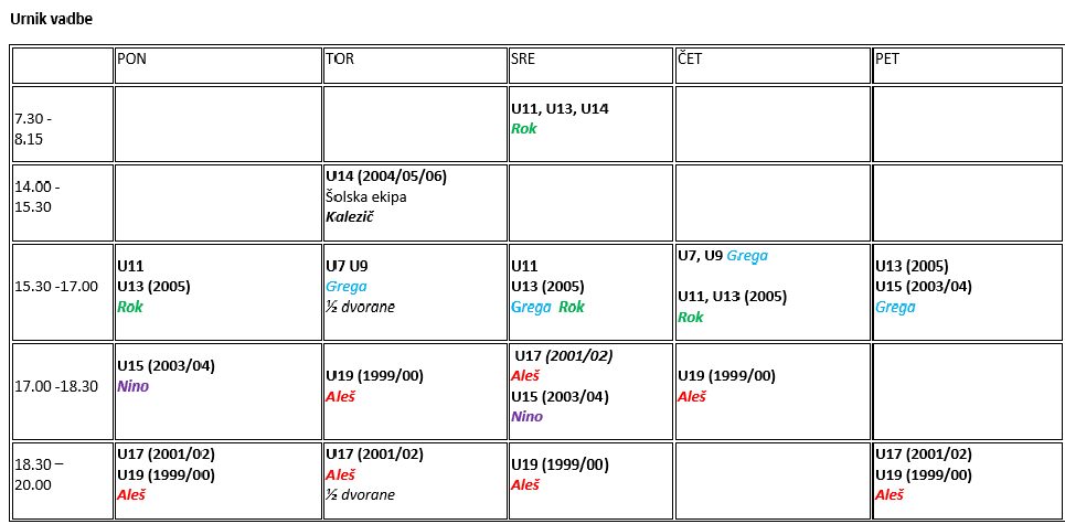 Pred nami so tudi kvalifikacije za ekipe U15, U17 in U19, zato smo nekatere ekipe na novo razdelili, temu primerno pa smo prilagodili tudi urnik vadbe.